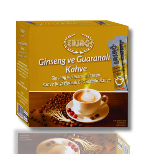 Ersag розчинна кава з женьшенем і гуараною – новий тренд, випускається у вигляді біологічно активної добавки з екстрактами рослин, які посилюють каву, що бадьорить дію.